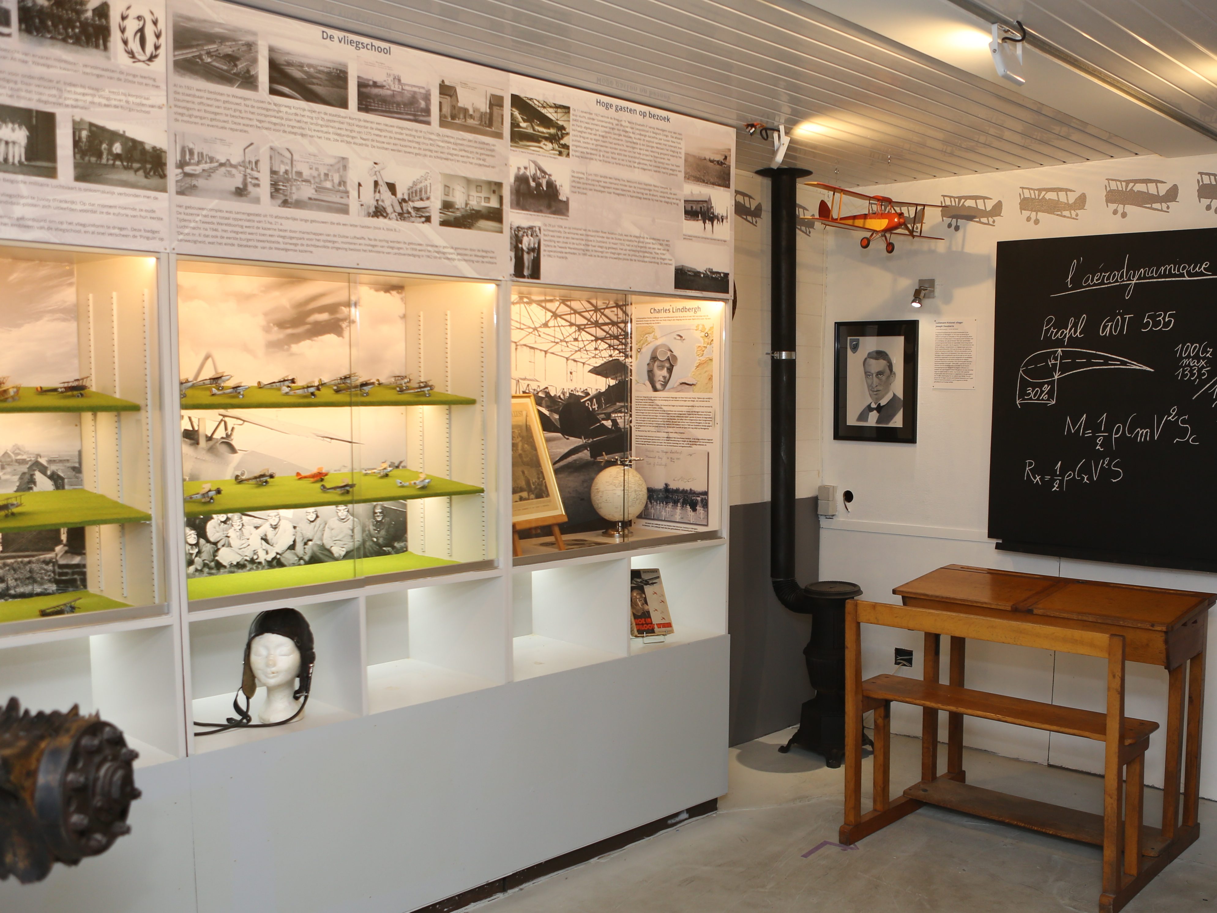 Maak kennis met de nieuwe expo die gewijd is aan de Militaire Vliegschool. Die was in Wevelgem gestationeerd van 1924 tot de woelige meidagen van 1940. Precies 100 jaar geleden werd daarmee de basis gelegd voor wat we nu kennen als de Internationale Luchthaven Kortrijk-Wevelgem. De vliegschool bracht tal van piloten voort die tijdens WO.2 hun sporen verdienden bij de Britse Royal Air Force en die na de oorlog de huidige Belgische Luchtmacht hielpen heropbouwen. De expo over de Militaire Vliegschool is ingekleed als een klaslokaal zoals het er in de jaren 30 van vorige eeuw moet hebben uitgezien.