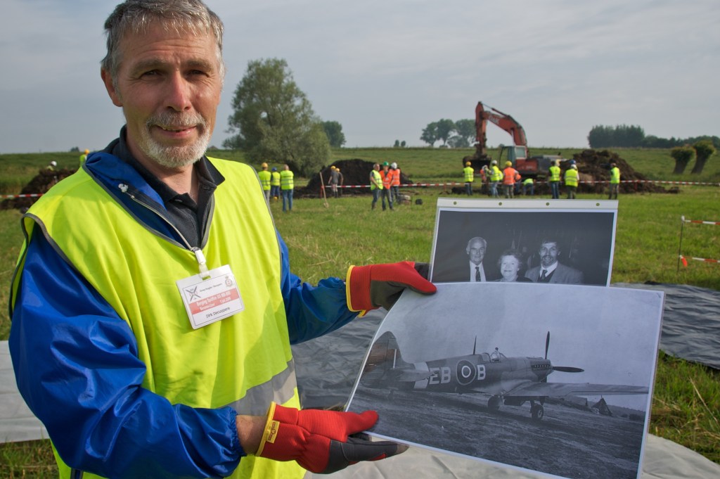Dirk Decuypere bij de berging van de Spitfire van F/Sgt Stan May in Beveren-Ijzer in 2009